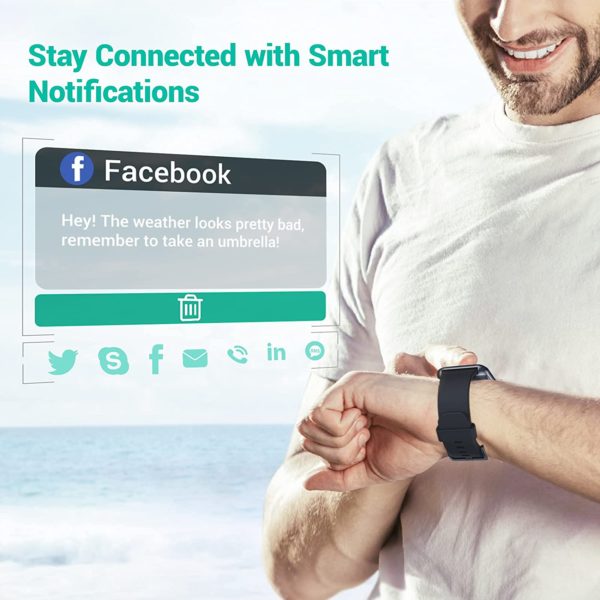Fitniv Smart Watch, 1.55 Inch LCD Color Touch Screen Smartwatch for Android and iOS Phones, Heart Rate Monitor & Sleep Monitor, 5ATM Waterproof Pedometer Fitness Tracker for Men Women, Light Blue