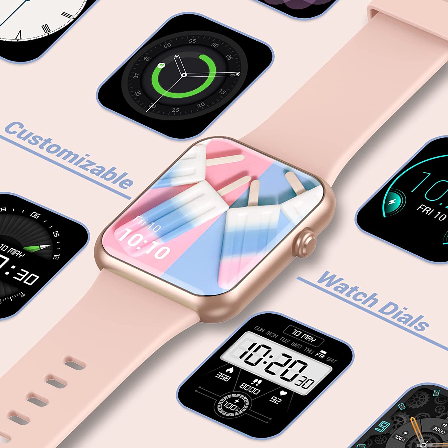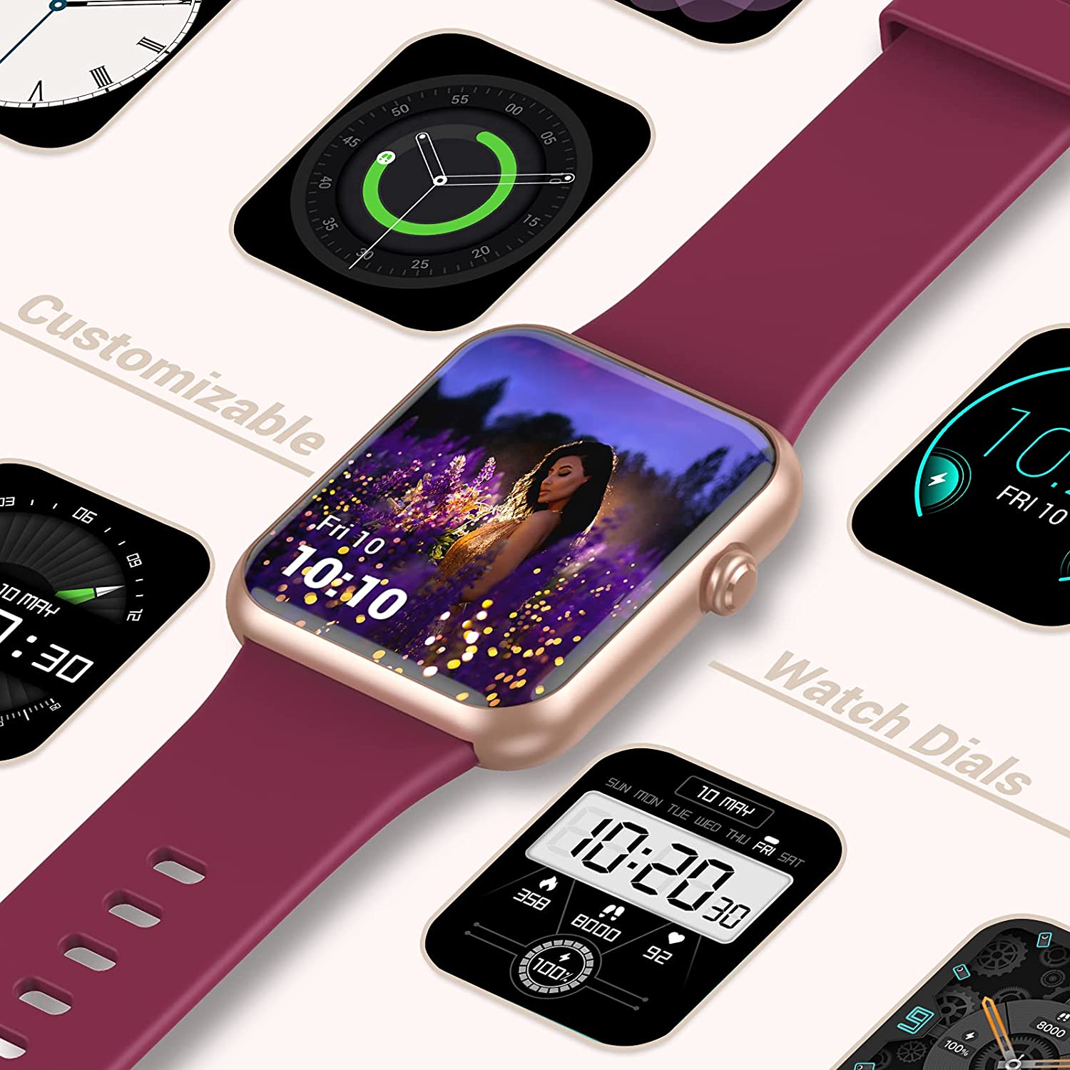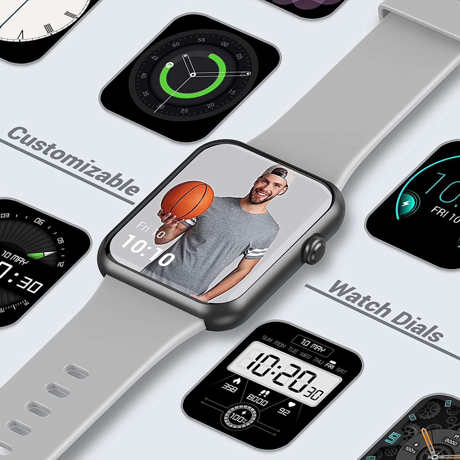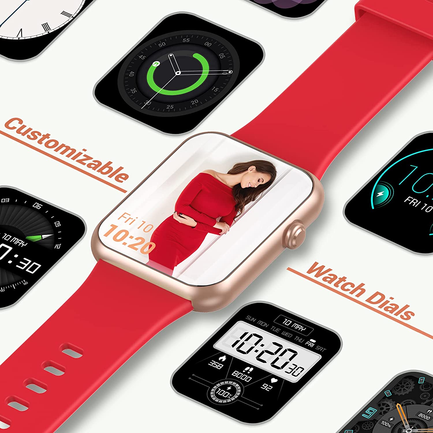 A Hi,The watch has 5 built-in dials (can be replaced when you download a new watch dial in the Fitdock app), and customize watch face also needs to be set in the app.