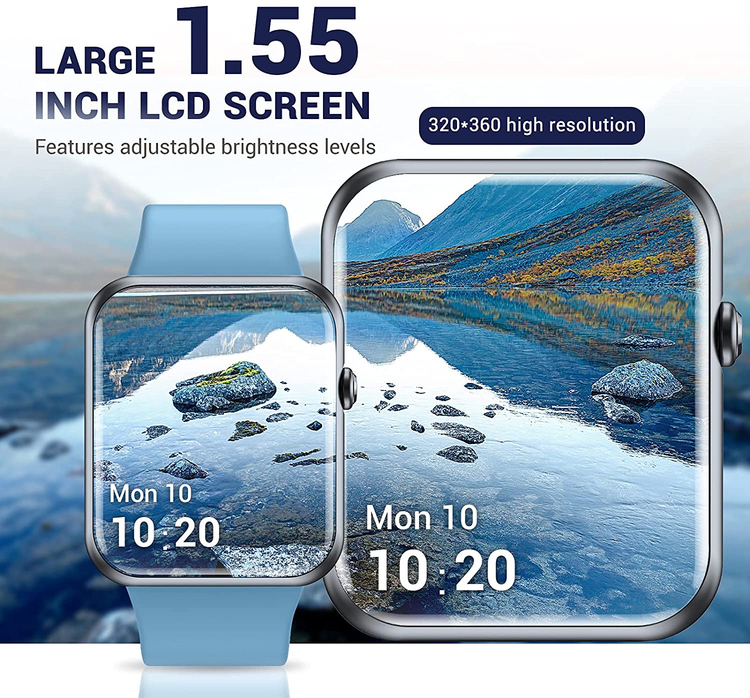 Fitniv Smart Watch, 1.55 Inch LCD Color Touch Screen Smartwatch for Android and iOS Phones, Heart Rate Monitor & Sleep Monitor, 5ATM Waterproof Pedometer Fitness Tracker for Men Women, Light Blue
