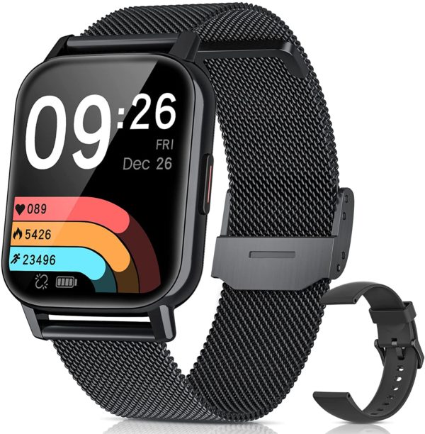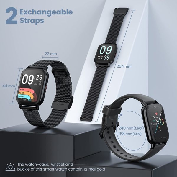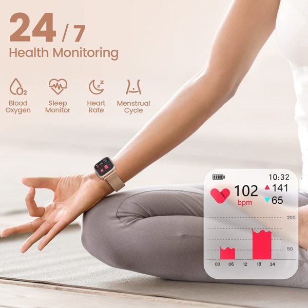 OBKBO Smart Watches for Women, 1.69″ Smart Watch for Android Phones and iPhone Compatible, IP68 Waterproof Fitness Tracker with Heart Rate, Blood Oxygen, Sleep Monitor, Menstrual Reminder, Watch Gold