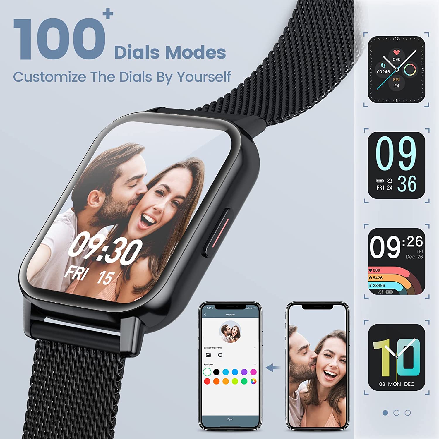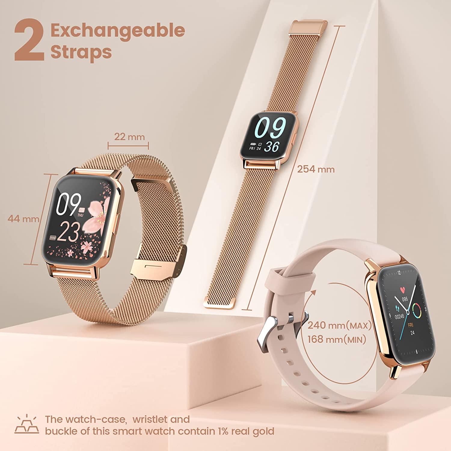 OBKBO Smart Watches for Women, 1.69″ Smart Watch for Android Phones and iPhone Compatible, IP68 Waterproof Fitness Tracker with Heart Rate, Blood Oxygen, Sleep Monitor, Menstrual Reminder, Watch Gold