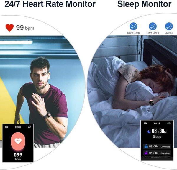 | Special Feature | Fitness Tracker (Pedometer, Calories, Distance), GPS tracking, Heart Rate Monitor, Blood Pressure Monitor, 24 Sports Modes, IP68 Waterproof, Sleep Monitor, Blood Oxygen Monitor, Call Notifications, SMS and APP Messages (WhatsAPP, Facebook, Messenger, Instagram…), Music & Camera Control, Brightness Adjustment, Weather Display, Sedentary Reminder, Gmail, Alarm Clock, Stopwatch, Find Phone, Find watch.See more |