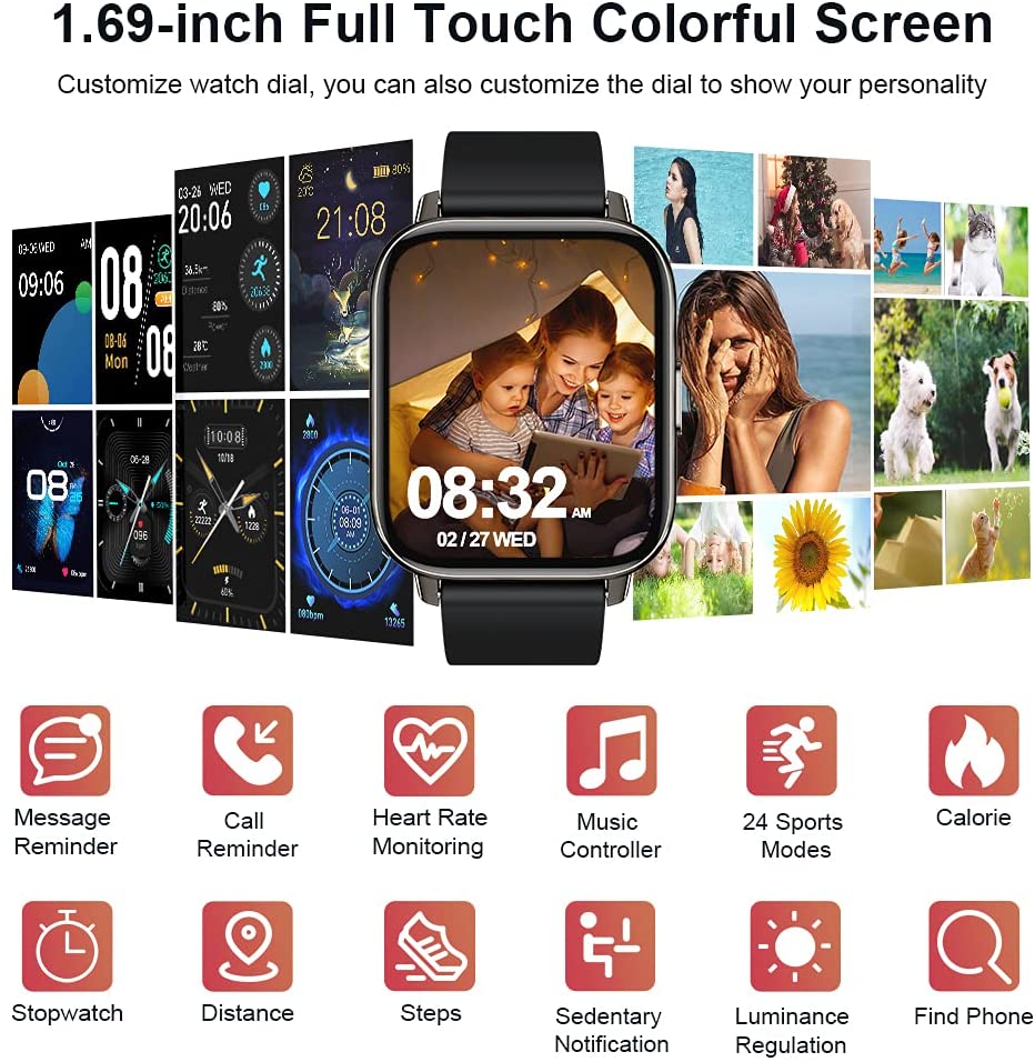 Smart Watch 2021 for Men Women, Fitness Tracker 1.69" Touch Screen Smartwatch Fitness Watch IP68 Waterproof 24 Sports, Heart Rate Monitor/Pedometer/Sleep Monitor, Activity Tracker for Android iPhone