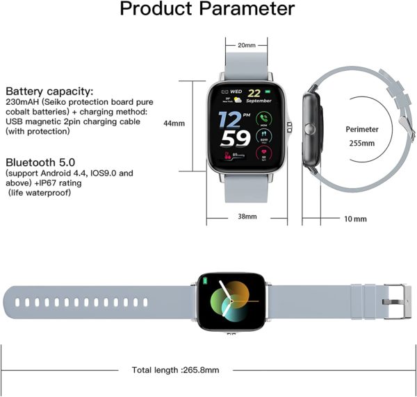 Smart Watch 2021(Call Receive/Dial), 1.72 in HD Full Touch Screen Smartwatch Fitness Tracker with Call/Text/Heart Rate/Blood Pressure/Sleep Step Tracking, Fitness Watch for Android/iOS, Women Man