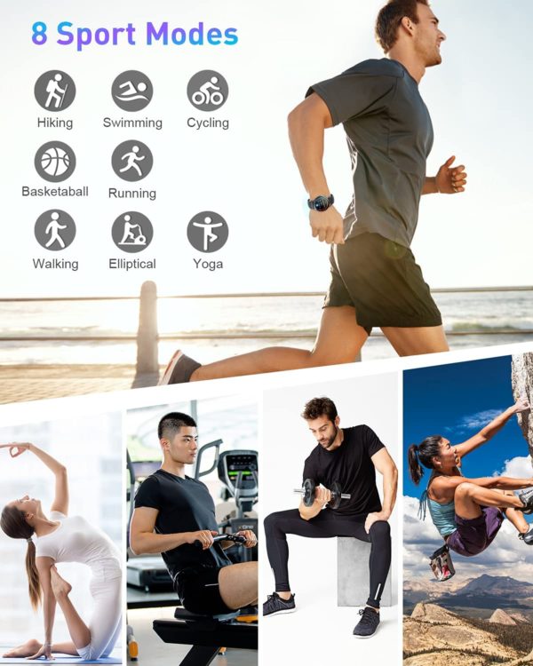 A Hi friend,The smart health watch has 8 sports modes: walking, running, swimming, hiking, cycling, basketaball, elliptical, yoga. You can view daily exercise records in the app.