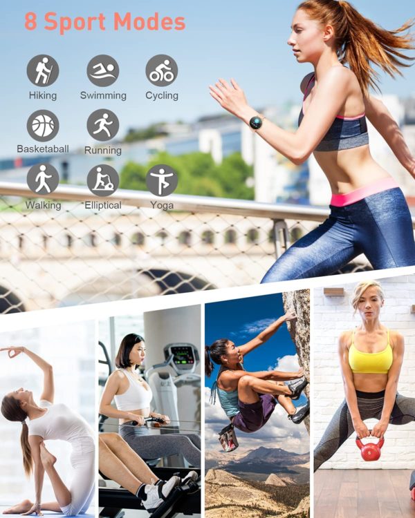 - гЂђFitness TrackingгЂ‘The fit watches for women can track your steps, walking distance and calories burned throughout the day. You can set a step goal. The watch also has 8 exercise modes to track your various exercise data and view the results of each exercise.