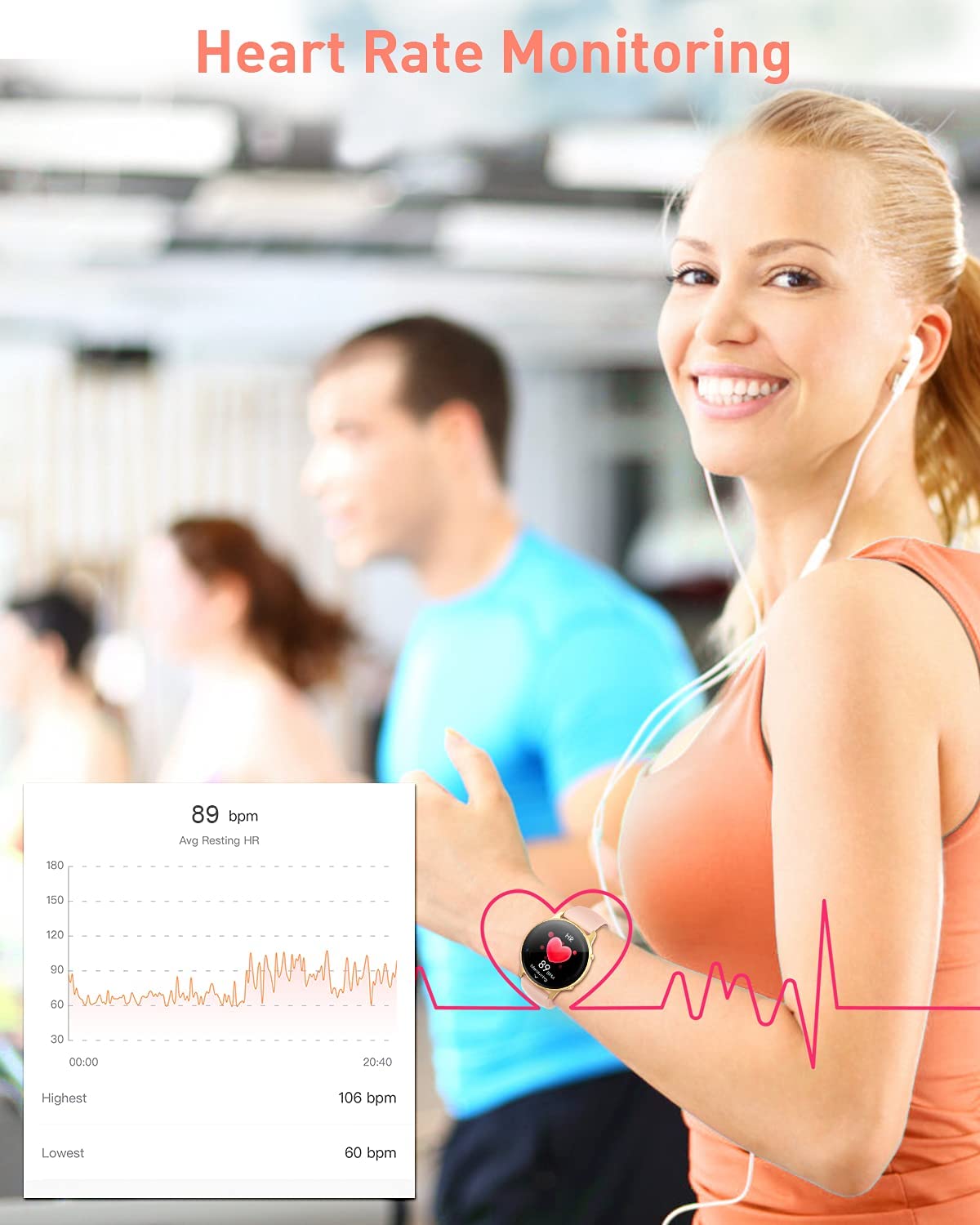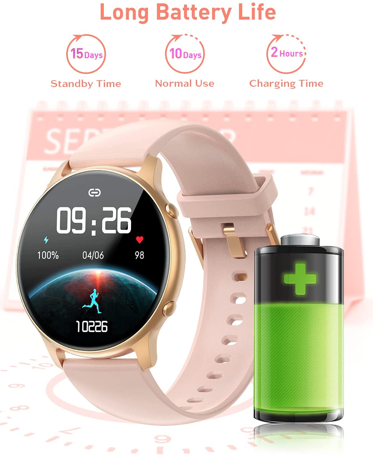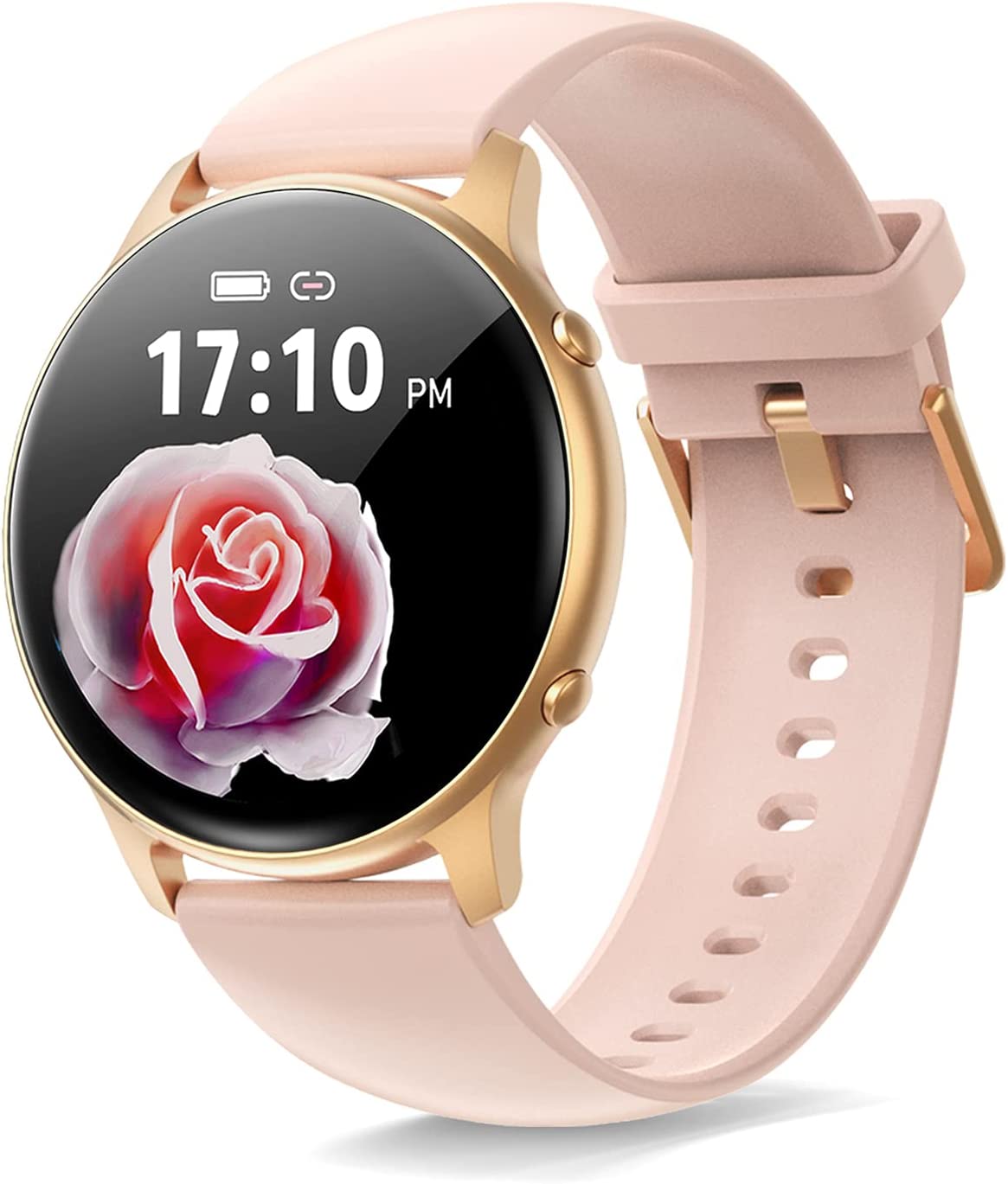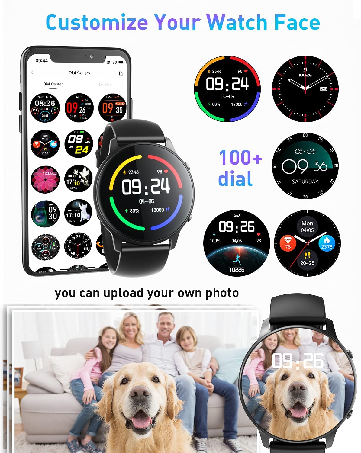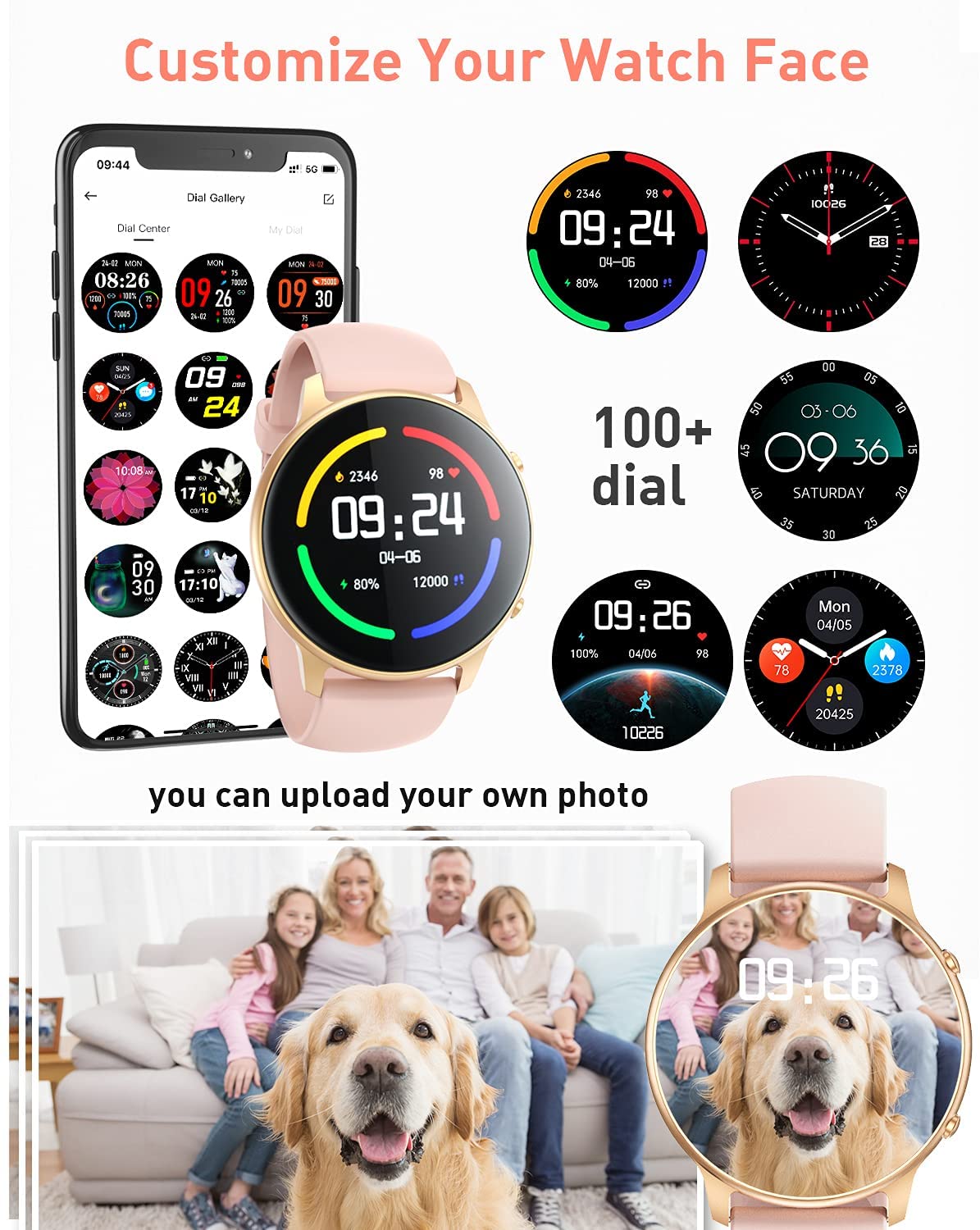 - гЂђCustomize Your Watch FaceгЂ‘ Different occasions require different styles of dial collocation. The smart watches for women contains 100+ dials in the APP, and you can upload your own photo to make your smartwatch more personal. 1.28” full-color touch screen covered with an aluminum alloy frame, so elegant and comfortable to wear.