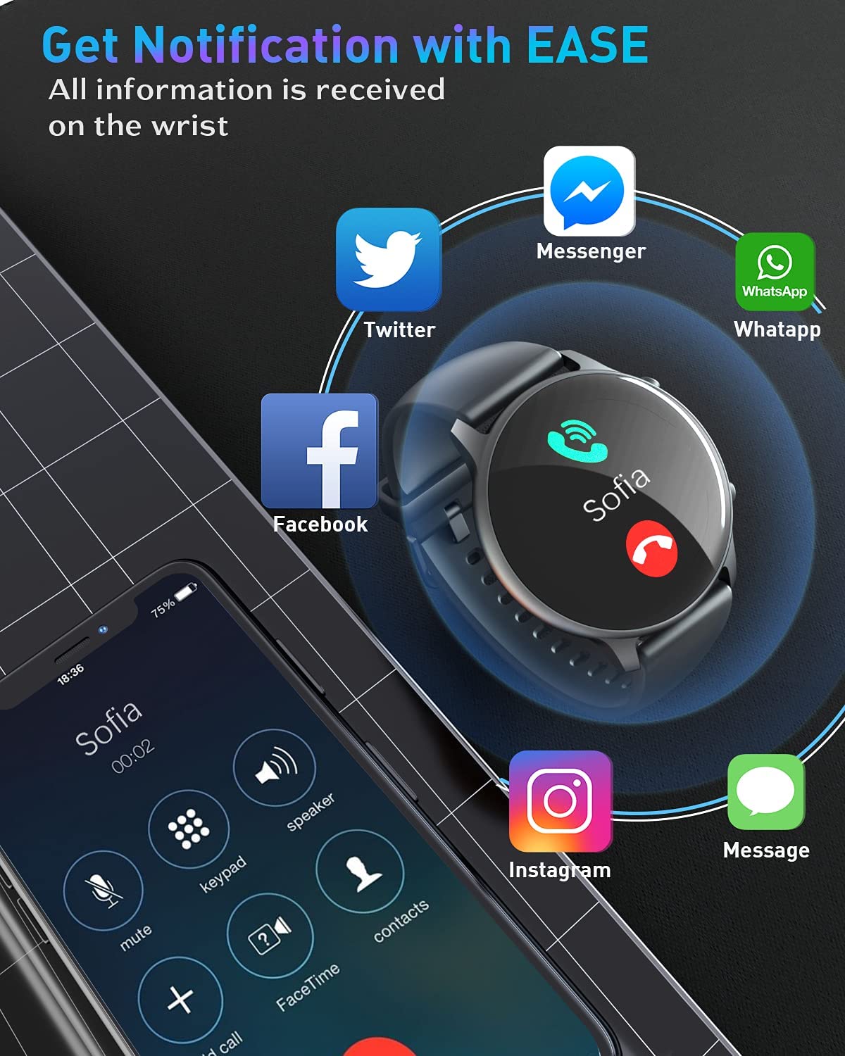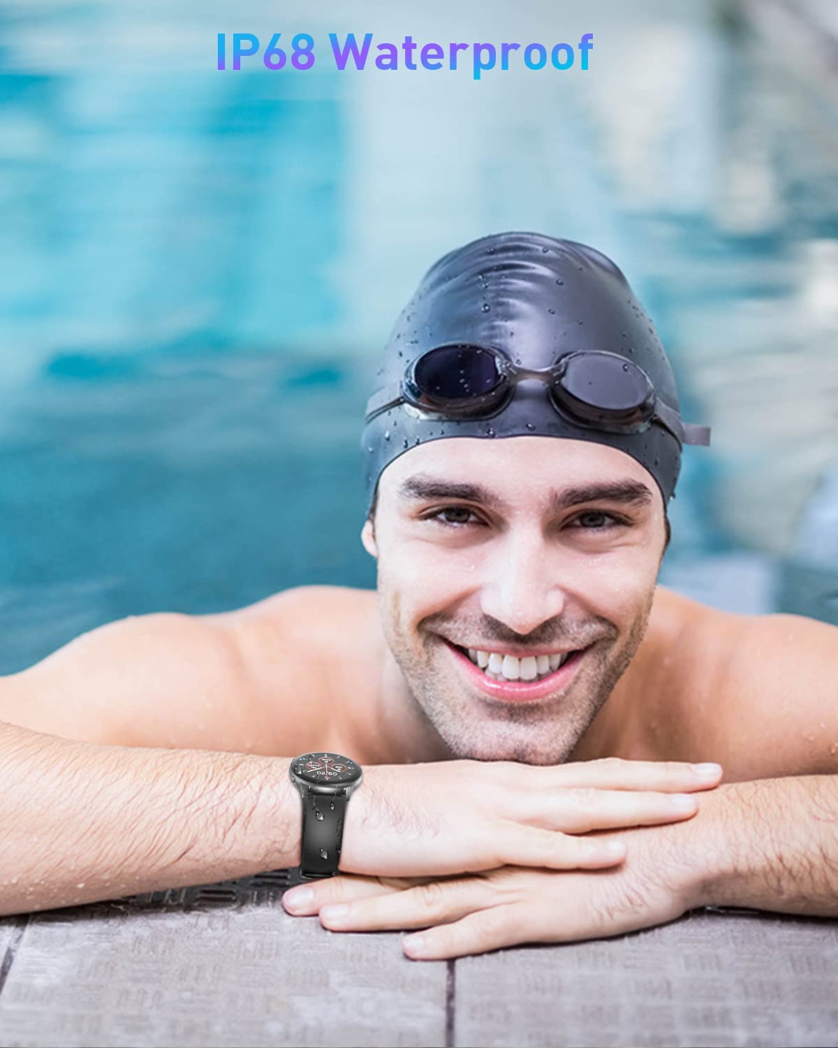 - гЂђIP68 waterproof Watch & More Practical ToolsгЂ‘The waterproof smart watches for men is IP68 waterproof. The smart watch for women also features with many practical tools, such as stopwatch, wealther, alarm clocks, timer, music controller, sedentary reminder, remote Camera, find phone. The calorie counter watch works with Android 5.0 or iOS 10.0 and above, Bluetooth 5.0 and above smartphones only, not for pc or tablet.