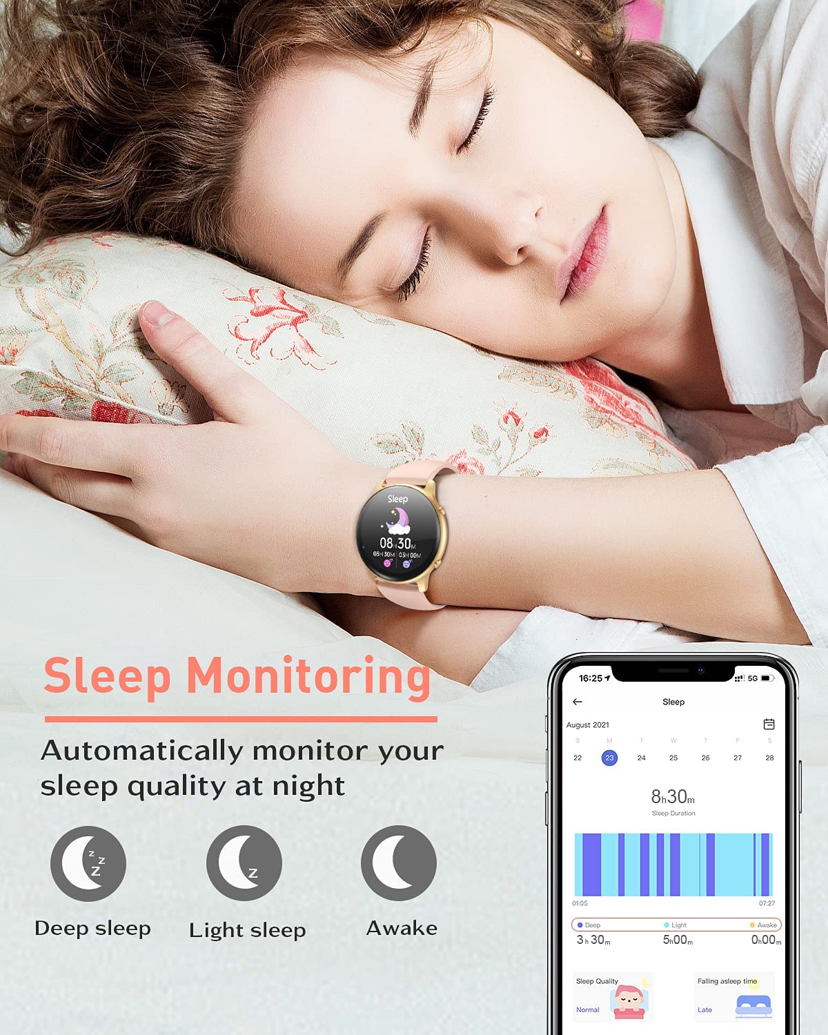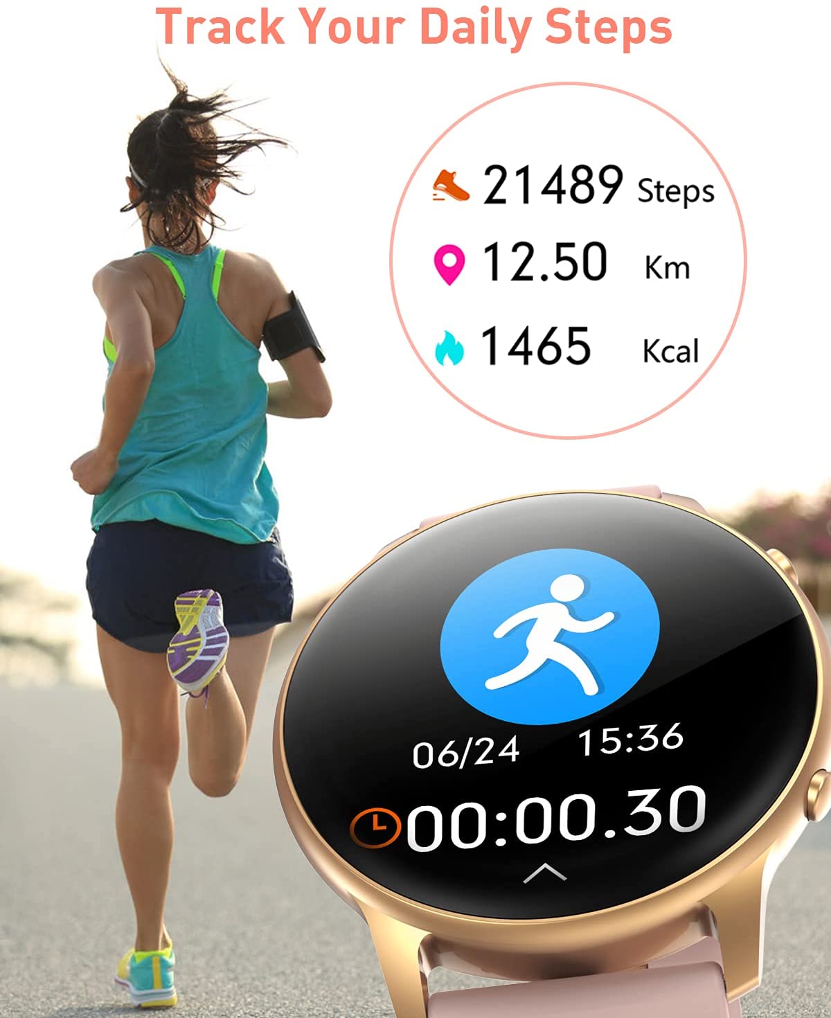 - гЂђFitness TrackingгЂ‘The fit watches for women can track your steps, walking distance and calories burned throughout the day. You can set a step goal. The watch also has 8 exercise modes to track your various exercise data and view the results of each exercise.