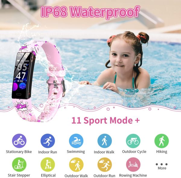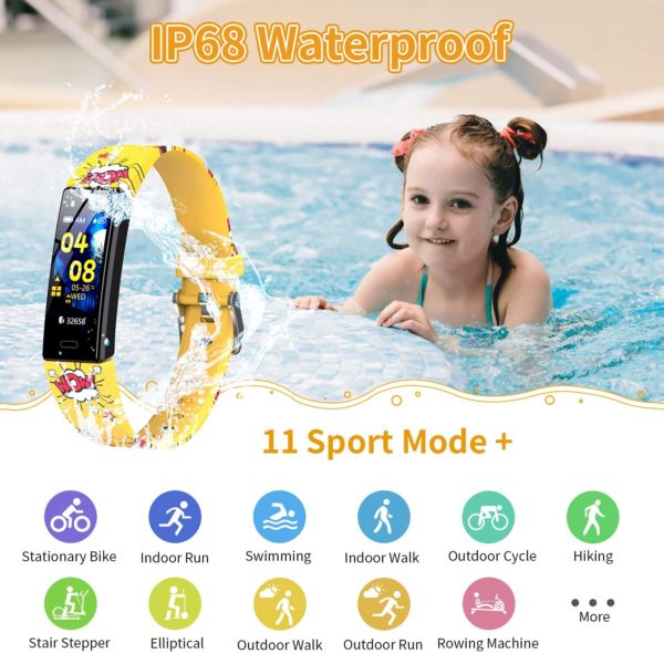 A This kids fitness tracker is IP68 waterproof, you can use it when you swimming.