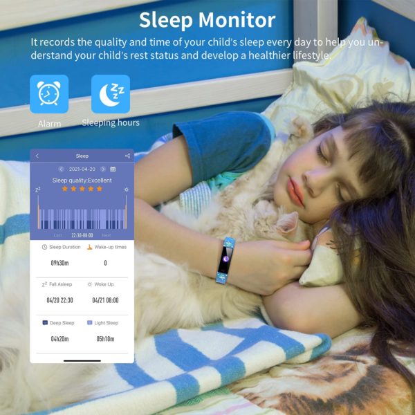 A Yes, the kids fitness tracker monitors sleeping automatically at night time.It can monitor falling asleep time and waking up time, and also records the deep sleep time and light sleep time.