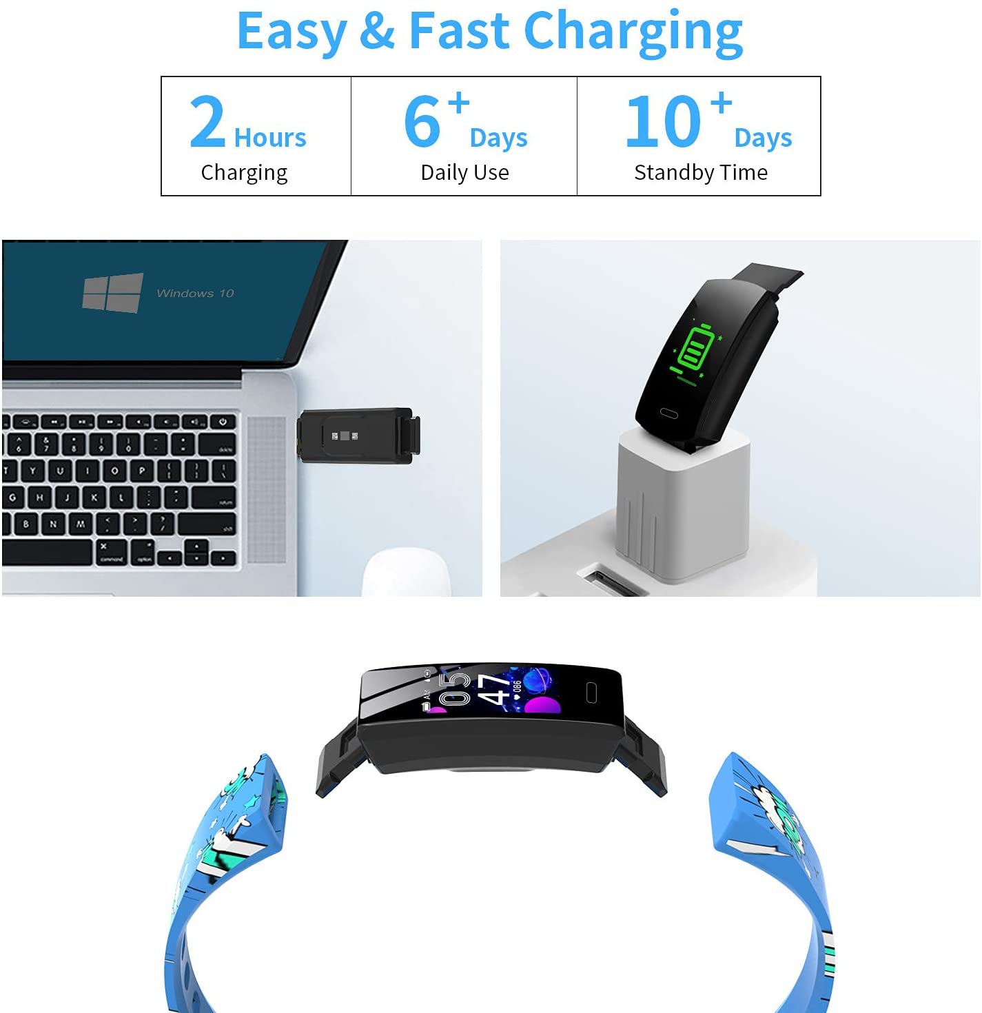A Its easy to charge it, the activity tracker built-in usb plug, no need charging cable.