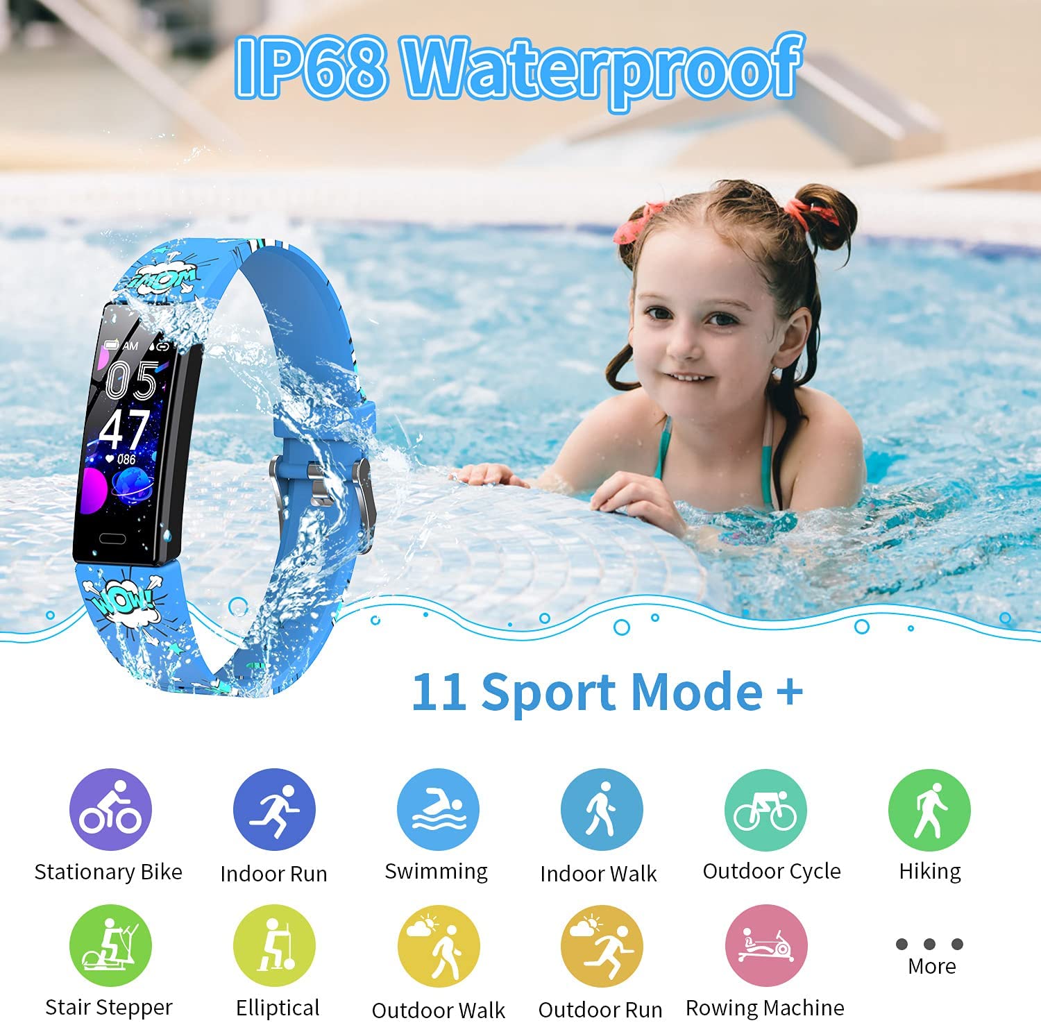 YEGKGO Fitness Tracker for Kids Girls Boys Teens, IP68 Waterproof Activity Tracker with Pedometer Calorie Counter, Heart Rate & Sleep Monitor Fitness Watch, Call & SMS Reminder, Gift for Kids
