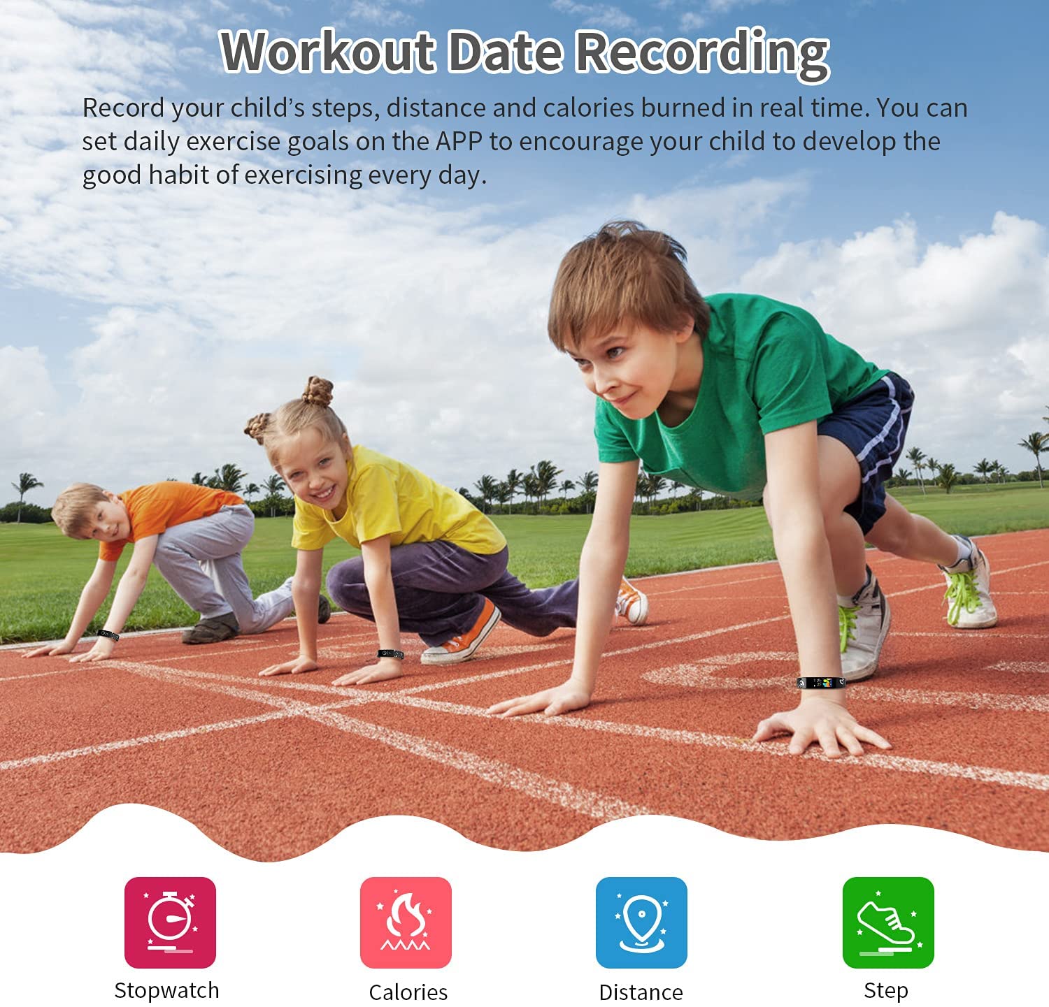 A The kids fitness tracker has 20 different alarm clock icons, you can choose the right one to remind him to drink water (need to set on the APP)